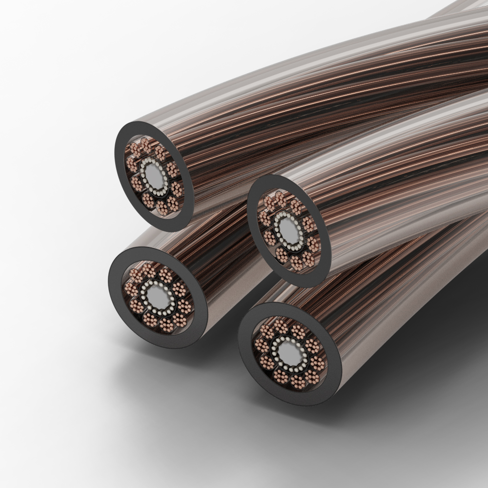 Das Kabel besteht aus 4 Litzen mit insgesamt 480 Drähten, darunter 20 versilberte monokristalline Kupferdrähte in der Mitte jeder Hauptlitze.
