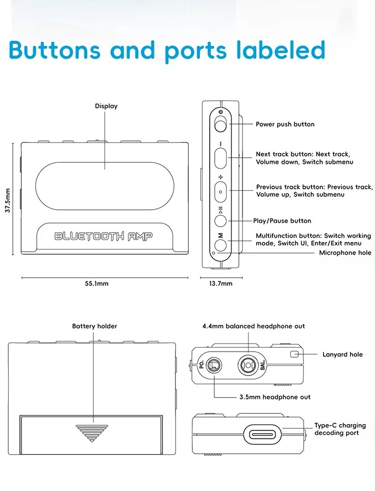Der SnowSky Retro Nano hat genau wie sein Name einen klassischen Retro-Look, der Sie auf eine Reise in die Vergangenheit mitnimmt. Der DAC/AMP verfügt über einen klassischen Casstte-Player-Look mit physischen Tasten und einer dynamischen Benutzeroberfläche, die ein abspielendes Band anzeigt. Sein Design ist von Retro-Kassettenspielern inspiriert.