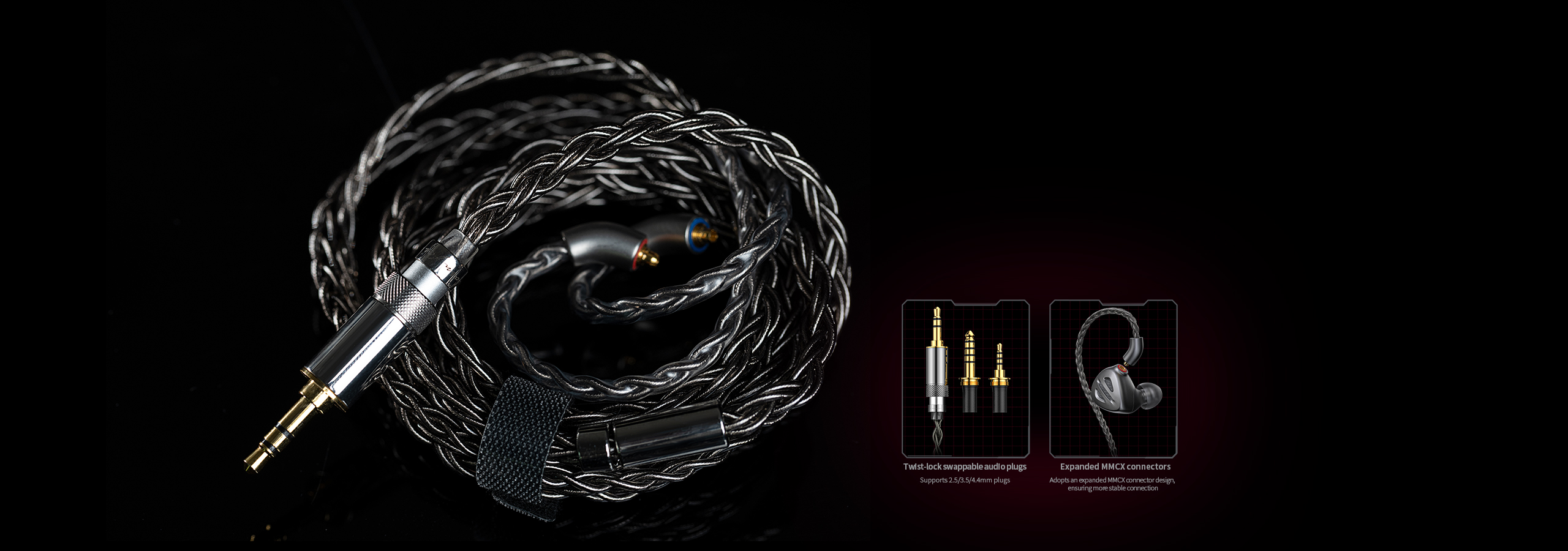 Eine Besonderheit ist das Kabel mit seinen Wechsel-Steckersystemen. Das mitgelieferte Kabel ist grundsätzlich ausgelegt auf den symmetrischen Betrieb, unterstützt jedoch auch den unsymmetrischen Betrieb durch den Wechsel der Stecker. Auf diese Weise ist der Betrieb des Kabels beziehungsweise Kopfhörers sowohl mit einem klassischen 3,5 Millimeter Klinke-Stecker als auch mit den Formaten 2,5 Millimeter Klinke sowie mit 4,4 Millimeter Klinke möglich.