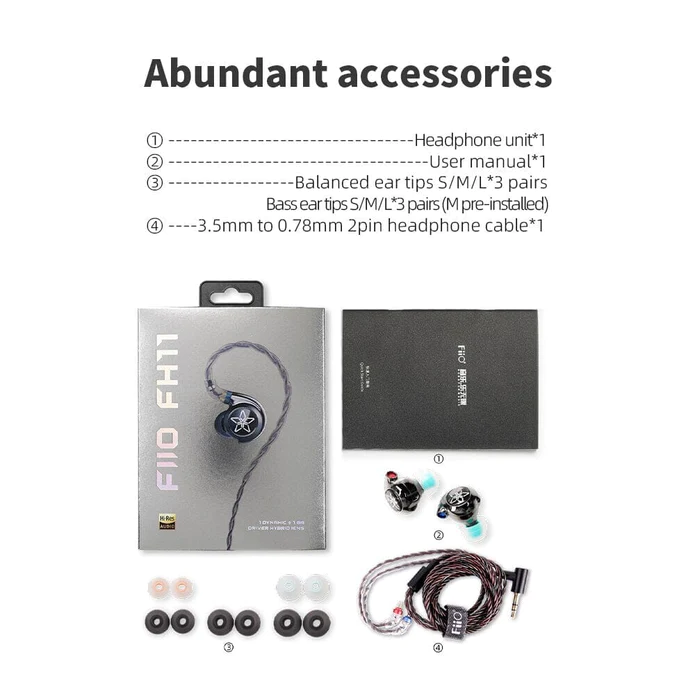 FiiO hat den FH11 mit einem dynamischen Treiber mit 10-mm-Membran auf Kohlenstoffbasis ausgestattet. Der Treiber wurde nach einer eingehenden Studie der Leistung von höherwertigen Modellen wie dem FF5 und dem FH15 entwickelt. Diese neue Membran auf Karbonbasis hat ein geringes Gewicht und eine extrem hohe Zugfestigkeit. Sie sorgt für einen klareren Klang mit schnelleren Transienten und geringeren Verzerrungen im Ausgangssignal.